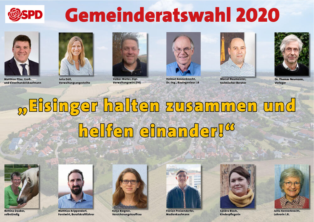 Im März 2020 wird der Eisinger Gemeinderat neu gewählt. Wir freuen uns auf die Wahl und wollen mit motivierten Eisingerinnen und Eisingern, z.B. mit Ihnen / mit Dir, bei dieser Wahl antreten!
